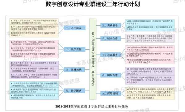 学院数字创业设计专业群成功入选校级重点专业群。制定以创意为核心、以数字技术为依托,现代信息技术与文化创意产业融合的数字创业设计专业群,制定专业群建设三年行动计划,确定专业群建设项目标志性成果年度计划表,以成果为导向,助力双高院校建设。
