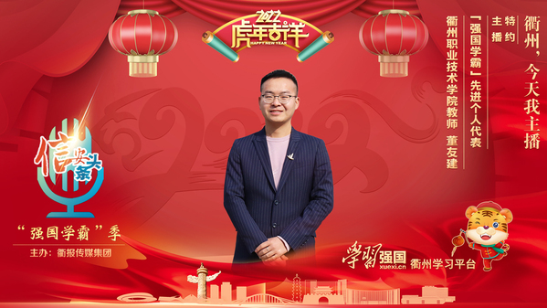 春节期间,董友建老师受邀为“学习强国”用户以及掌上衢州《信安头条》粉丝送上虎年新春祝福,为“学习强国”衢州学习平台2022迎春学习运动会的运动员们加油喝彩。
