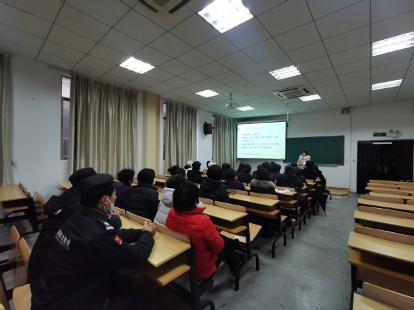 为进一步落实学校2022年春季开学疫情防控工作的要求,铸牢校园防疫屏障,后勤保卫处于2月17日对学校安保人员、公寓管理员、餐饮从业人员、物业保洁人员等进行了新冠肺炎疫情防控知识培训,积极宣传持续做好疫情防控常态化工作的重要性,切实提高全体参训人员的安全防范意识。