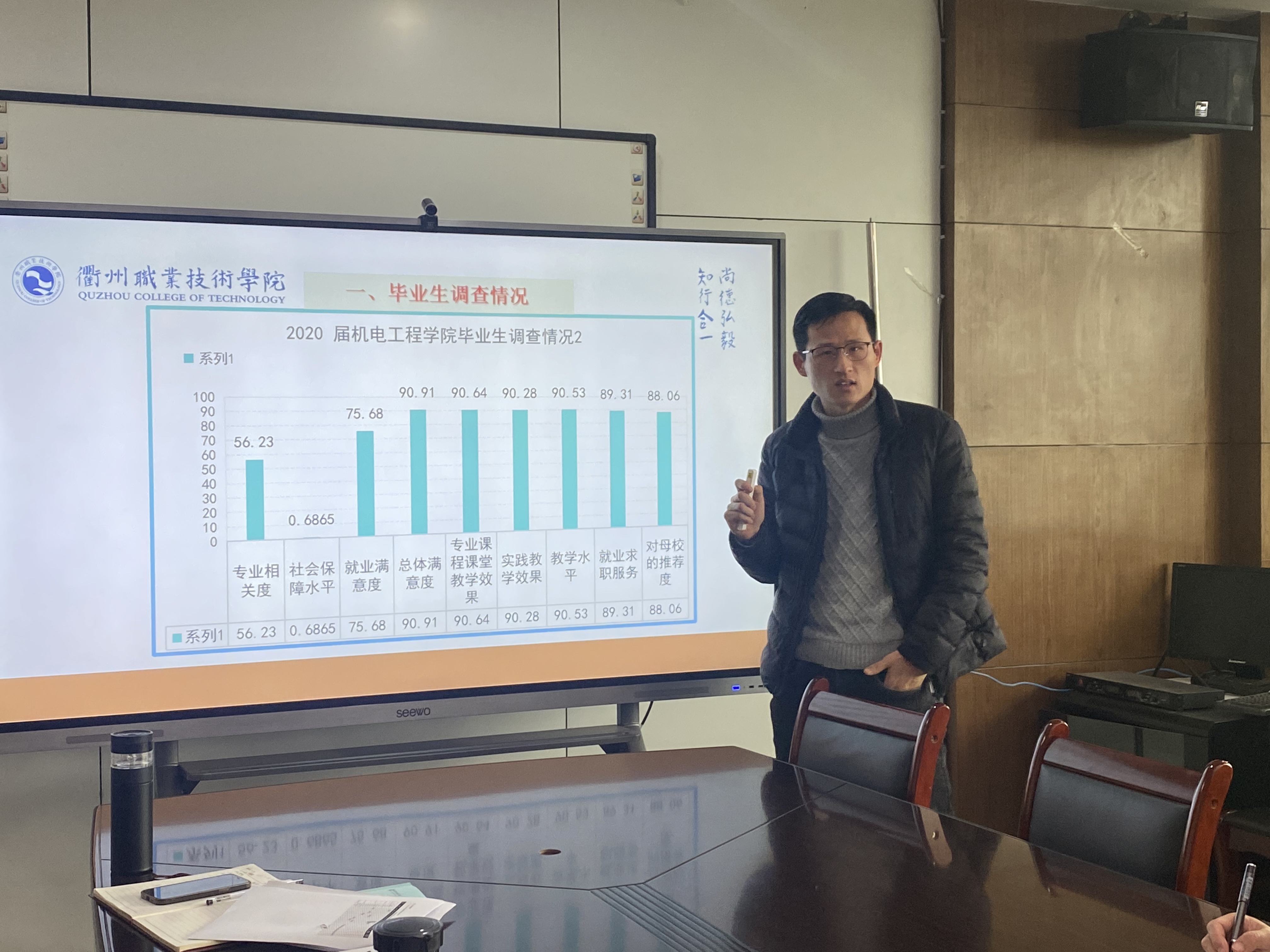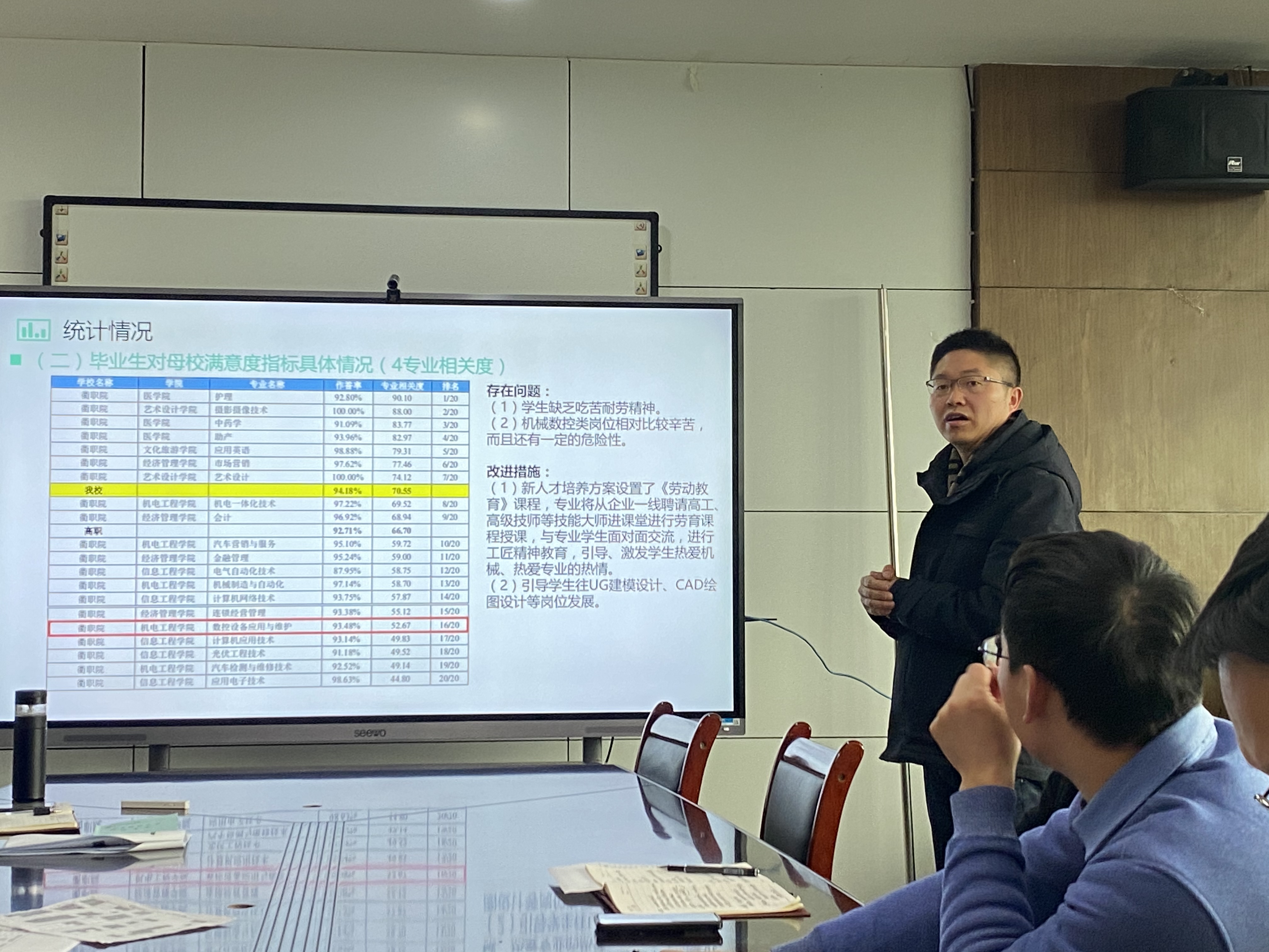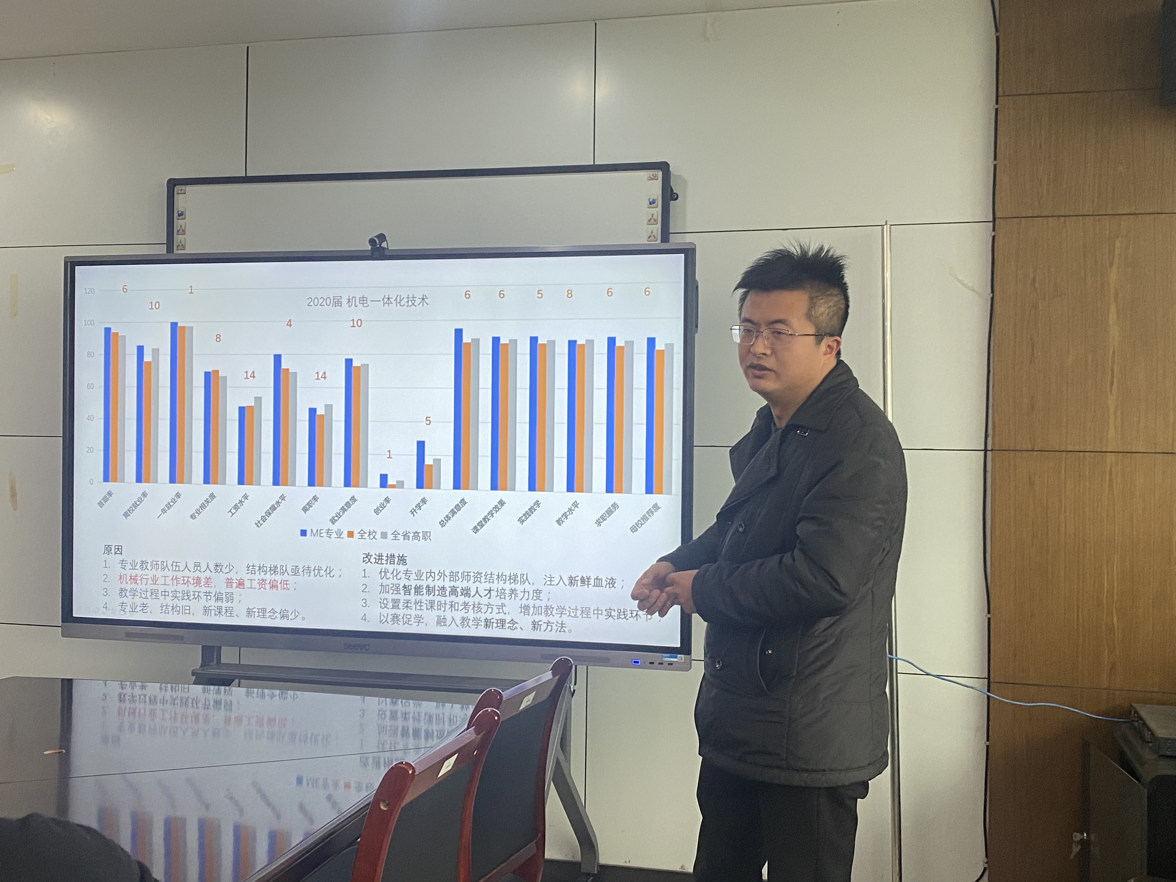 为进一步提升学生综合满意度,提高学院育人水平,2月20日,机电工程学院在机电307召开毕业生跟踪调查数据分析会,会议由机电工程学院党总支书记朱峻主持,全体班子成员及专业主任、综合办和学工办主任参加了本次会议。