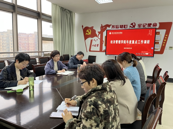 3月1日下午,校党委委员、副校长徐浪静到经济管理学院走访调研,就经济管理学院2022年重点工作进行了调研座谈。经济管理学院班子成员、科级干部、各专业团队负责人参与会议。