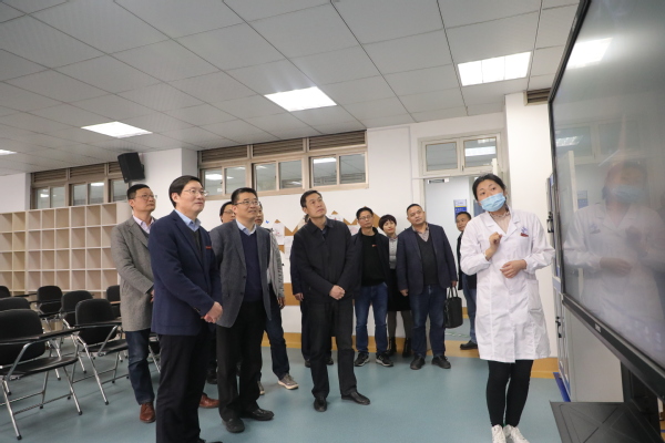 赵祖地一行实地走访了我校乡村振兴社会培训展厅、工业互联网实训中心、医护康养实训中心、艺术设计学院毕业生设计展厅、四省边际大健康公共实训中心,详细了解了我校高水平专业群建设、职业技能培训等情况。