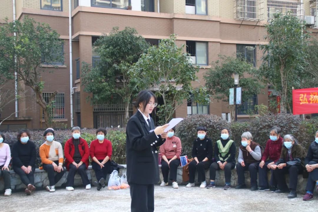 “红色数智”志愿者、00新时代理论宣讲员刘亚歌为社区居民讲述了衢州英烈王多祥、抗美援朝老兵郭城他们在战争年代不畏牺牲、保家卫国的伟大精神。21计算机3班叶敏欣以“弘扬雷锋精神,争做新时代先锋”为题向居民们讲述了张桂梅“春蚕到死丝方尽,蜡炬成挥泪始干”的“燃灯精神”。