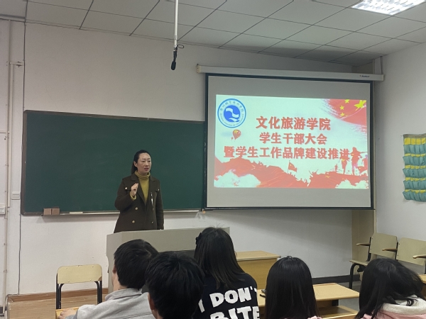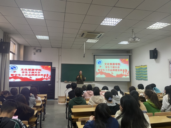 新学期伊始,我院召开了文化旅游学院学生干部大会暨学生工作品牌建设推进会。此次学生干部大会的召开,旨在明确今后学生会各部门的工作方向,在工作中加强学生干部与老师、同学们之间的沟通,不断强化学生干部的工作积极性。大会明确指出,学生干部们要集思广益用创新性思维举办出各类活动,办出学院特色。全体学生干部认真听取李威老师和邵翔老师对学生会发展的指导意见,深度理解各个部门的职责所在。