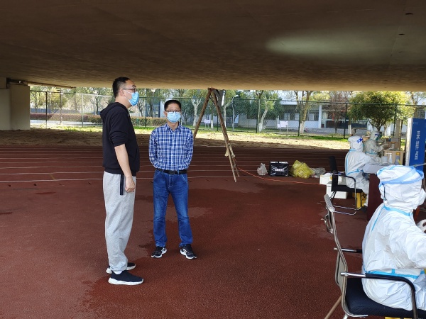 校党委书记徐须实检查校园物资供应、校园防疫措施落实情况;实地走访校园核酸检测现场;深入联系寝室,了解学生思想动态,关心关怀学生的学习和生活情况。