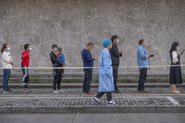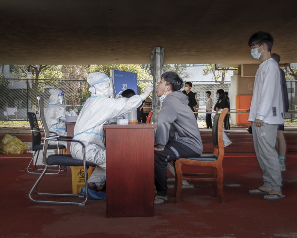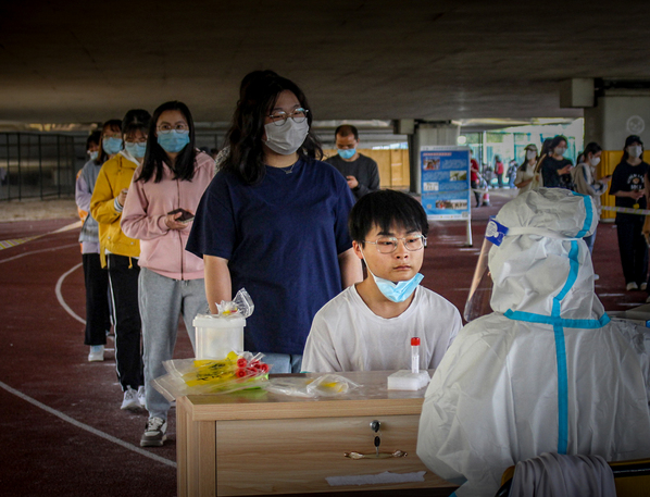 下午核酸检测接近尾声,稍微放松一下 舒成通 摄