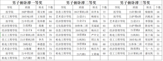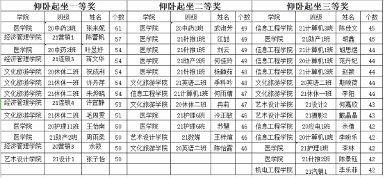 各二级学院同学们积极报名响应,经过初选,最后共计200余名同学参加决赛。经过裁判观看视频逐一认定,评选出个人奖和团体奖,具体名单如下: