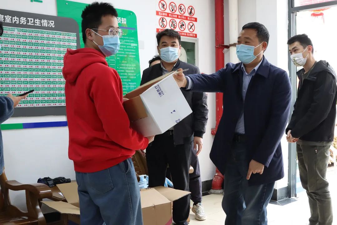 校长吕延文走访慰问战区一线工作人员,提醒大家在做好防疫工作的同时,也要注重身体健康。
