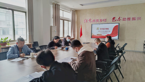 2022年3月30日上午,艺术设计学院召开二级理论学习中心组(扩大)会,专题学习全国“两会”精神。会议由党总支书记戚景云主持,学院党总支委员、支部书记等参加学习会。