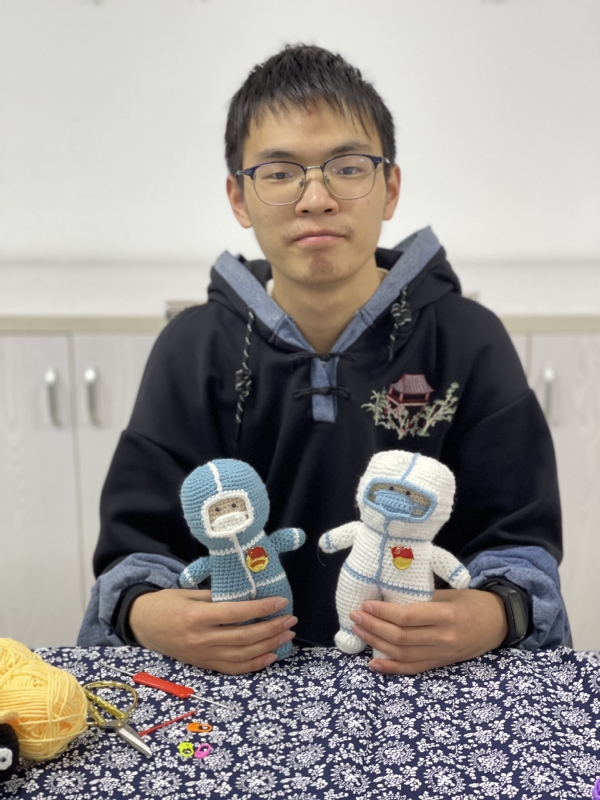 “‘衢大白’是3月16日出生的,‘衢小蓝’是3月22日。”范骏成告诉记者,疫情下学校实行封闭管理,为了丰富同学们的生活、缓解大家的情绪,match学校团委举办了一次“青春接力 共同抗疫”线上才艺展示活动。范骏成也积极参加,作为学校手工文创社团的骨干,他从高二就开始学习编织,因此决定用钩针编织的形式来进行创作,致敬奋战在抗疫一线的医护人员、领导老师和志愿者们。