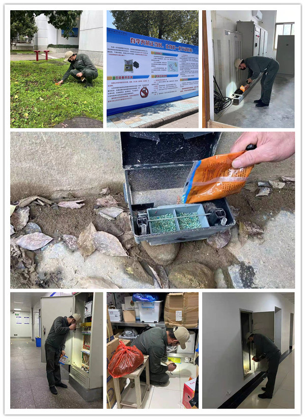 学校邀请衢州清清害虫防治有限公司巡查校园卫生死角,查看鼠咬痕迹,对教学楼、学生公寓、图书馆、实训楼、食堂、体育馆等重点区域周边环境,尤其是树丛、下水道、垃圾中转站和毒饵站等鼠害活动频繁的区域投放安全有效的慢性抗凝血剂溴敌隆鼠剂(鼠药),在食堂、仓库、配电房等室内放置粘鼠板,预防校园鼠害的发生,保障广大师生的身体健康和生命安全。