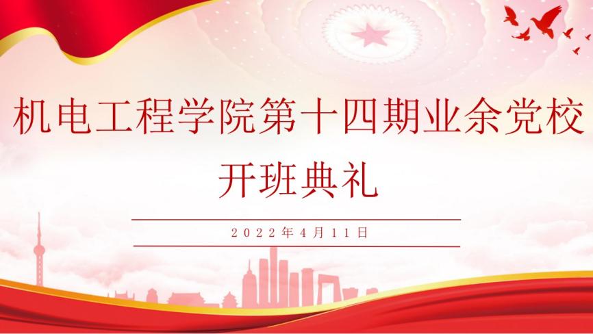 4月11日中午,机电工程学院分党校在图书馆1号报告厅举行第14期入党积极分子培训班开班典礼。机电工程学院党总支书记朱峻,机电工程学院院长、党总支委员魏小华,机电工程学院党总支副书记叶云霞,机电工程学院副院长、党总支委员张新星,机电工程学院党员以及第14期入党积极分子全体学员参加典礼。会议由组织员吕云鹏主持。