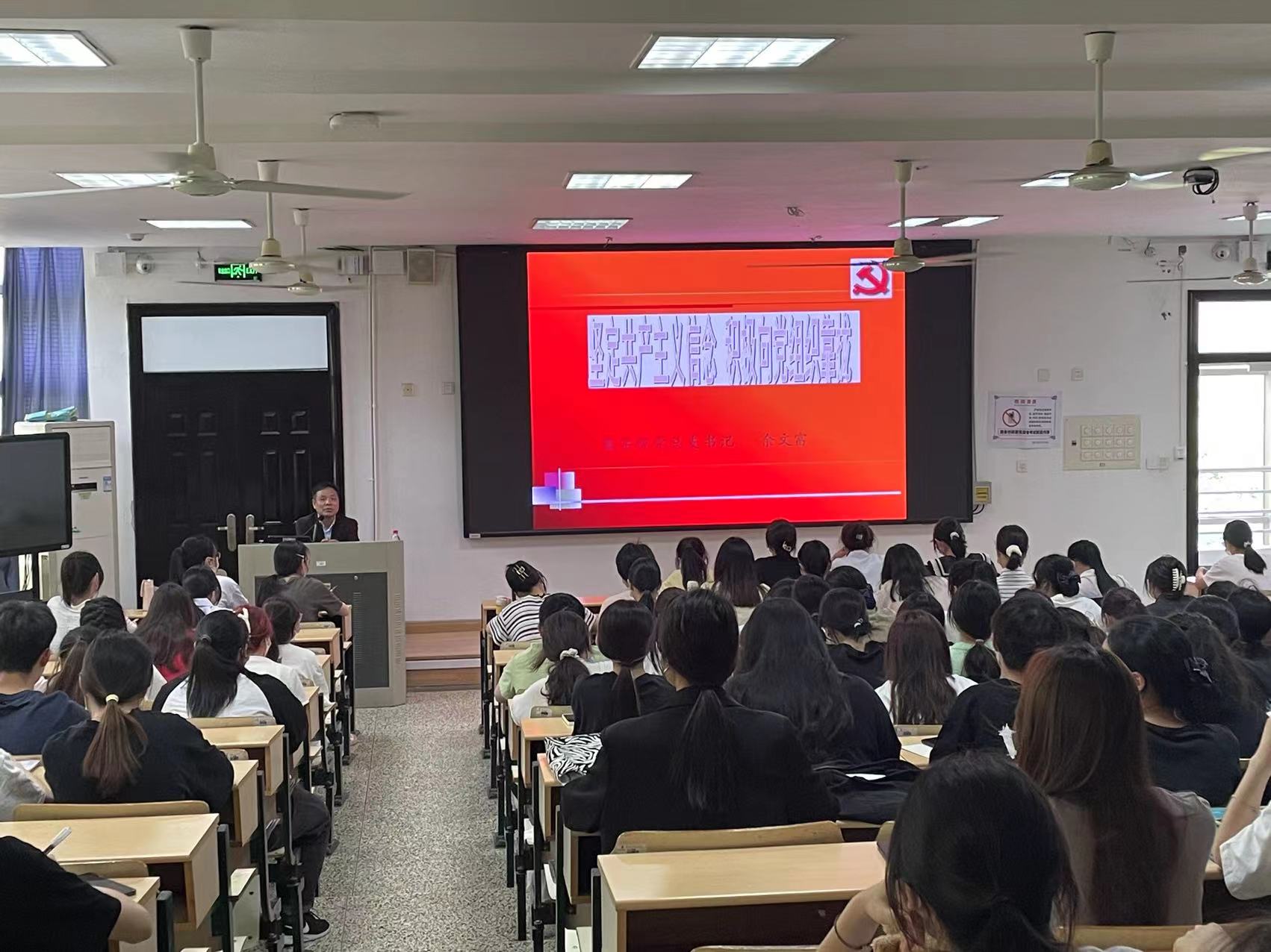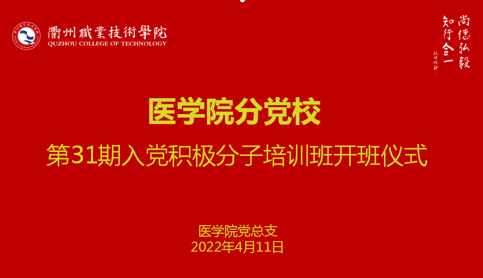 开班仪式上,医学院党总支书记余文富作了讲话,祝贺在座学员成为入党积极分子,同时他以“坚定共产主义信念,积极向党组织靠拢”为主题开讲了本次培训的第一课,他从入党动机的概念、端正入党动机的意义以及如何端正入党动机等方面做了详细讲解,希望大家要坚定共产主义信念,认真学习习近平新时代中国特色社会主义思想,认真学习党章党规,树立全心全意为人民服务的思想,扎实练就过硬职业技能,从思想和行为上进一步向党组织靠拢,成为一名“德、智、体、美、劳”全面发展的高素质技术技能型专门人才。