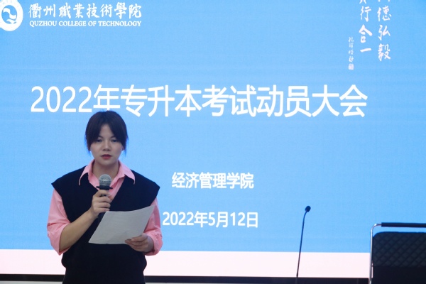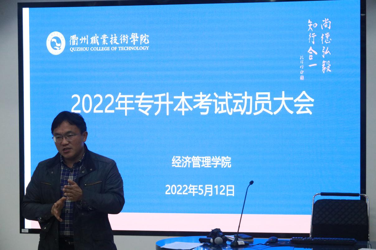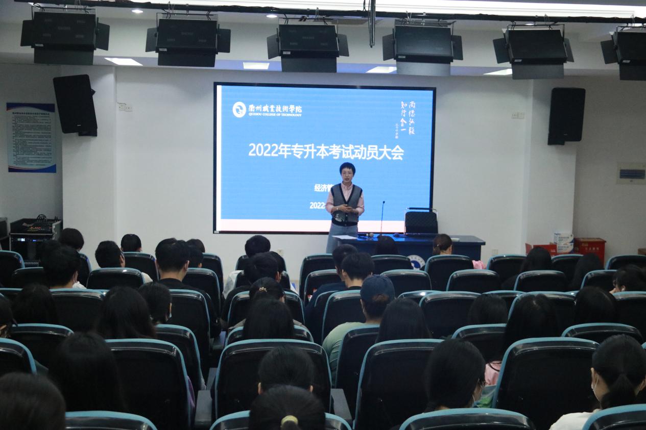 为扎实有效推进“专升本”工作,提升我院专升本考生的备考信心。5月12日下午,经济管理学院在图书馆二号报告厅举行了2022届专升本动员会,班子成员、专业主任、毕业班班主任等出席。本次会议由院党总支副书记蒋雪芬主持。