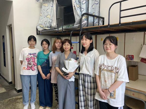 徐浪静副校长作为寝室联系老师,在学习生活中与同学保持亲密联系,在入学之初便与寝室5名同学就大学期间的规划进行了深入交流,为同学们今后的努力提高方向。6月9日下午,徐浪静副校长受邀参加“文明离寝”活动,期间徐浪静副校长与同学们亲切交流,进一步了解了每位同学的去向,并对大家今后的发展表达了殷切期望。