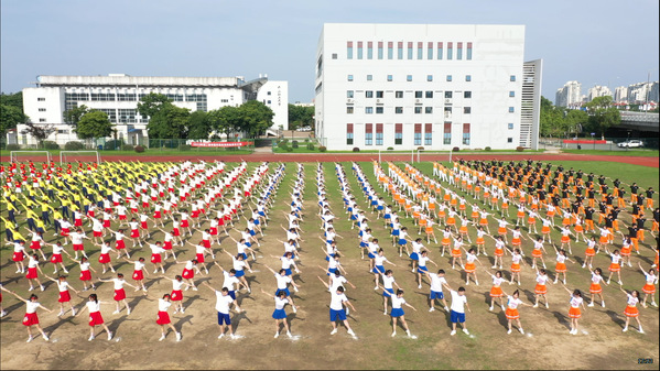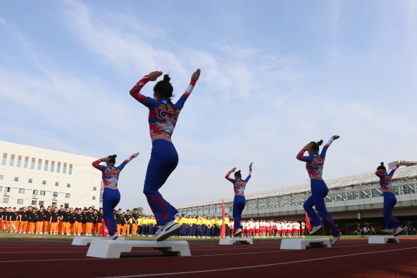 身着靓丽服装的六支队伍洋溢着满满的热情进行了集体大型健身操表演,同学们在阳光下尽情的挥洒汗水,用身姿诠释青春的美好,用热情编织青春的浪漫。