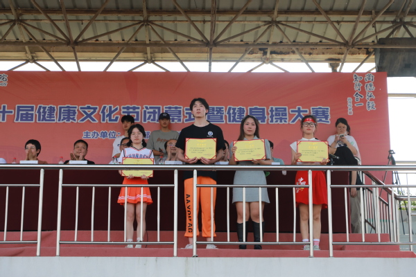 6月14日下午,我校第二十届健康文化节闭幕式暨健身操比赛在运动场隆重举行。党委委员、宣传部部长孔庆红,各相关部门负责人、各二级学院党总支书记出席闭幕式。