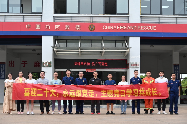2022年6月15日下午,文化旅游学院休闲体育党支部全体党员教师带领大二即将实习的学生以及大一学生部分学生观摩了衢州市柯山消防救援大队,并开展了一次意义深刻的党日主题活动。