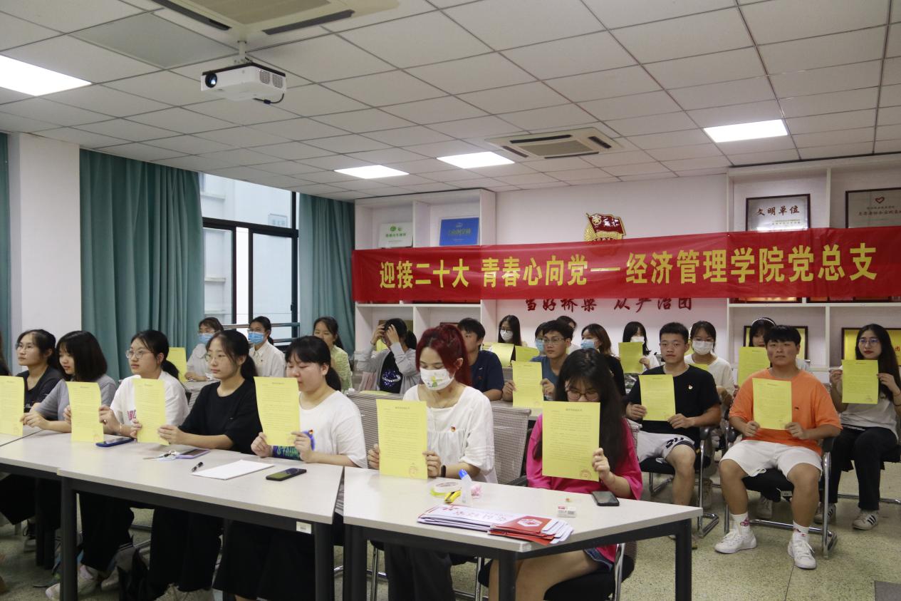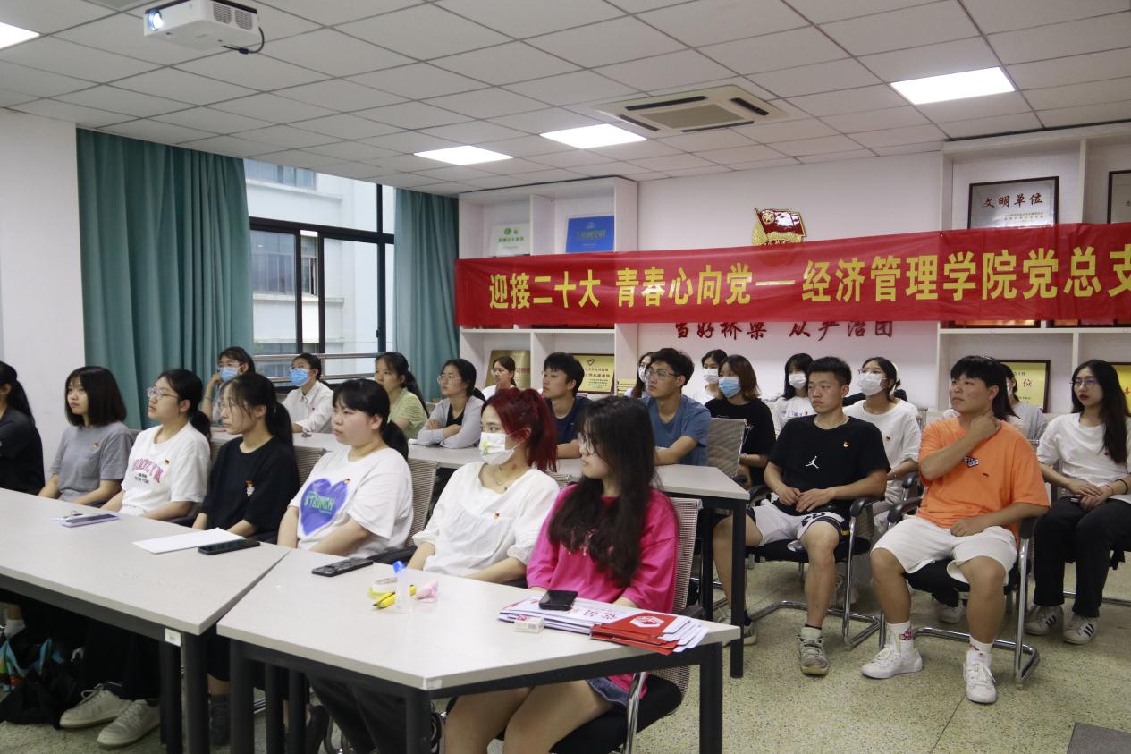 为贯彻落实学校组织部党建文化活动月工作要求,教育引导广大学生党员感党恩、听党话、跟党走,以昂扬的精神风貌迎接党的二十大胜利召开,经济管理学院党总支在组织了开展“迎迎二十大,青春心向党”学生党员集体学习,30名学生党员参加。