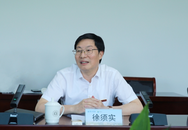 徐须实汇报了我校基本办学情况及全力以赴推进“双高”院校建设、俯身贴地服务衢州经济社会发展、多措并举提升人才培养质量等方面的工作。