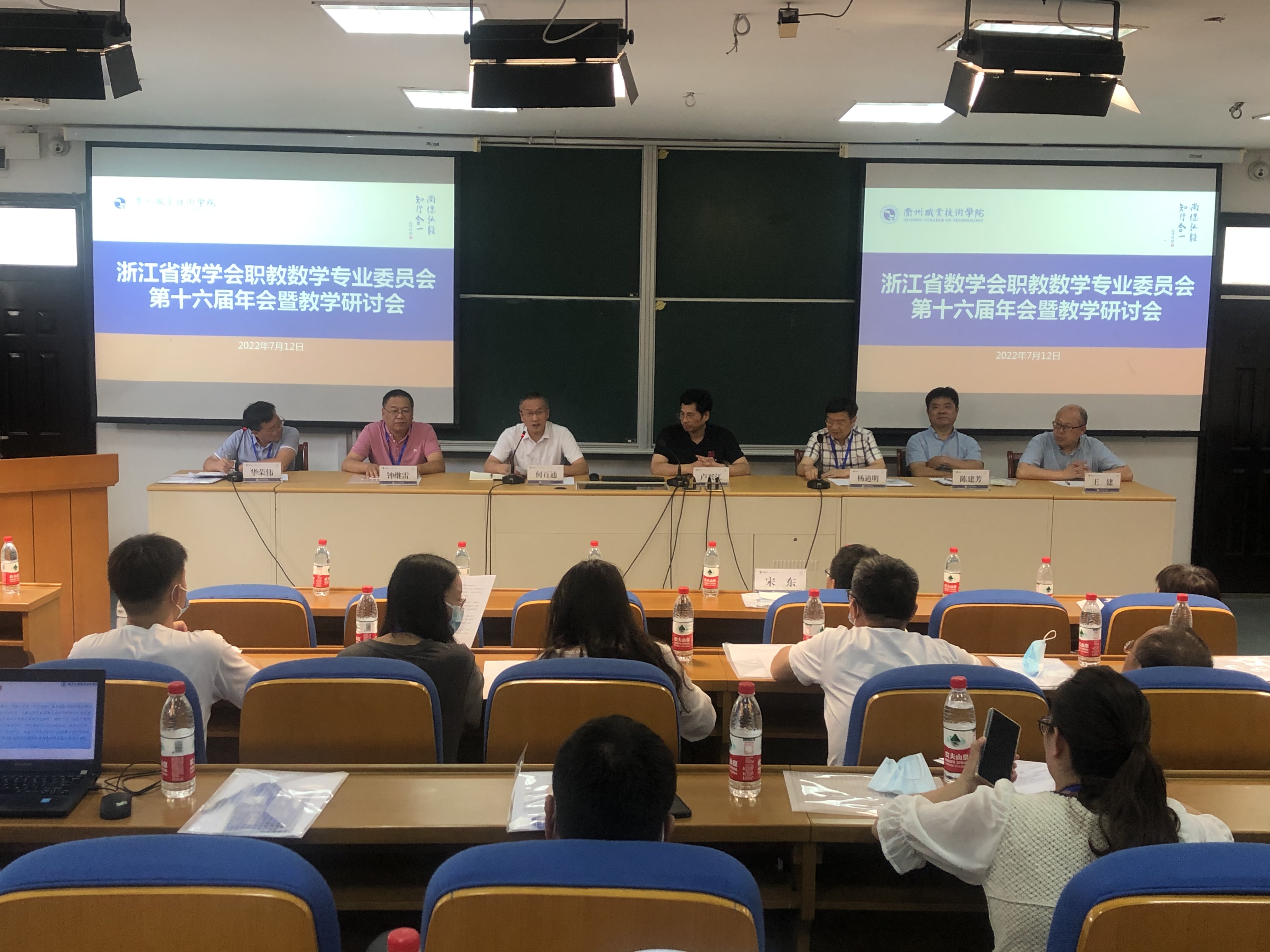 7月11日至7月14日,浙江省数学会职教数学专业委员会第十六届年会暨数学研讨会在我校举行,来自全省20余所高校的50余位教师代表参会。我校党委委员、副校长何百通出席开幕式,浙江省数学会职教数学委员会秘书长华荣伟主持。