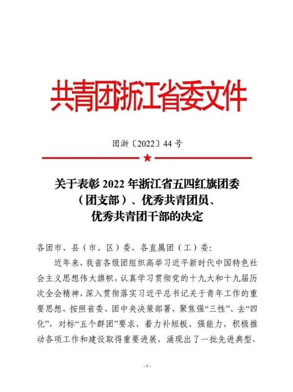 为表彰先进、树立典型,激励各级团组织和广大团员、团干部向先进学习、向优秀看齐,近日,共青团浙江省委表彰了2022年浙江省五四红旗团委(团支部)、优秀共青团员、优秀共青团干部。我校地掷球社团成员、经济管理学院20金融管理2班沈云梅同学荣获“浙江省优秀共青团员”称号。