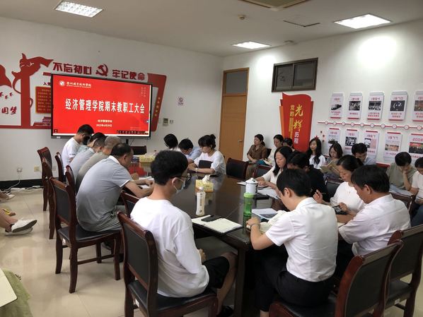6月29日下午,经济管理学院在729会议室召开期末全体教职工大会,经管全体教师参会。