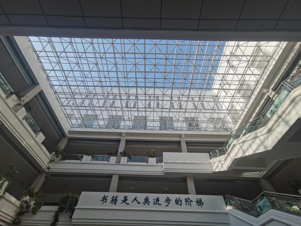 4.图书馆雨棚有“新衣”,风声雨声声声不入耳,只听读书声。