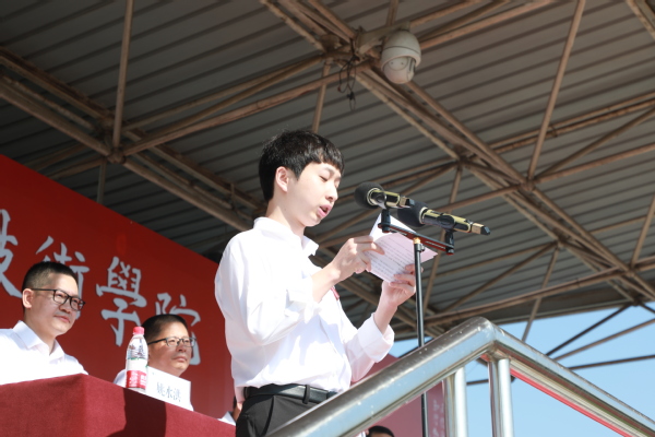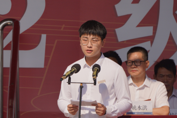 吕延文致辞。吕延文向来自全国8个省的2500余名新同学表示热烈的欢迎!向辛勤培育学生成长的家长和老师致以崇高的敬意!“我们正处在一个伟大的时代,一个充满挑战也充满希望的时代,在中华民族走向伟大复兴的进程中,我们生逢其时、使命在肩!”他希望同学们既要怀揣学业有成的理想,更要把追求卓越、敢为人先、淬炼品格作为奋斗目标。