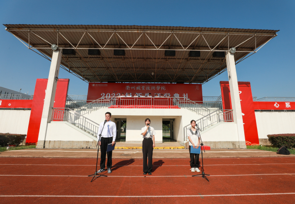 校徽,是衢职人的象征,更承载着学校对同学们的殷切期望和美好祝愿。院长们为新生代表授予校徽。同时,在场全体新生庄重地为自己佩戴上了充满意义的大学校徽。同学们将牢记校训“尚德弘毅、知行合一”,以高尚的道德立身,以坚毅的品格承载天下重任,用奋斗践行“请党放心、强国有我”的青春誓言,不负时代,不负韶华,不负学校和家长的殷切期望。