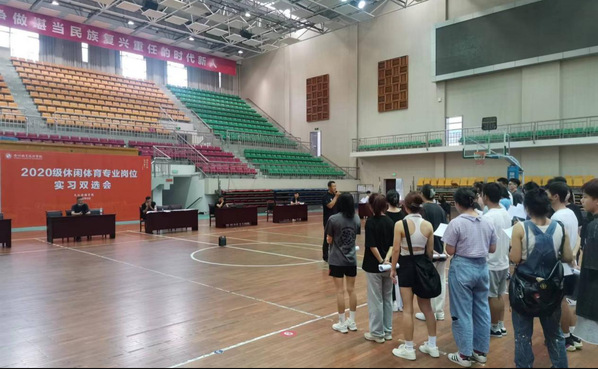 根据教育部等八部门关于印发《职业学校学生实习管理规定》的通知(教职成[2021]4号)的文件精神,为全面落实我校2020级休闲体育专业学生岗位实习(辅助阶段)工作,进一步加强校企合作紧密度,提升产教融合深度,9月13日下午,文化旅游学院举行2020级休闲体育专业岗位实习双选会。