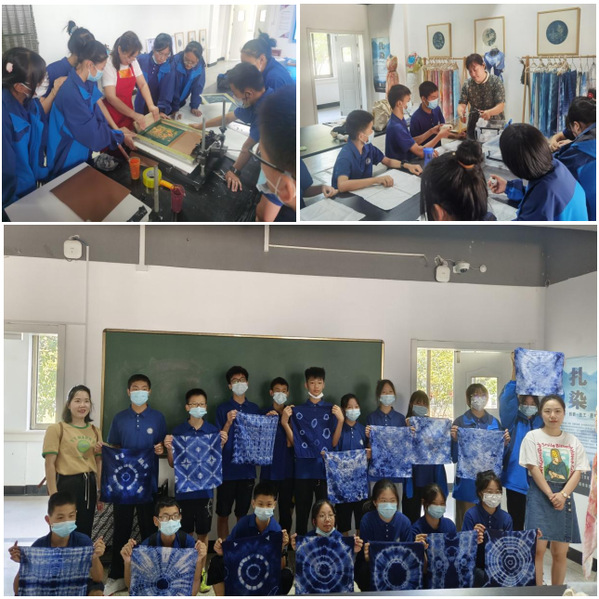 研学活动第三站,同学们来到衢州职业技术学院艺术设计学院,在艺术的海洋里体验了丝网版画的神奇和美妙、扎染技艺的梦幻与复杂,充分激发了同学们的艺术细胞和创造能力。
