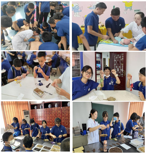 研学活动第一站,同学们来到衢州职业技术学院医学院,现场学习了心肺复苏、母婴护理体验、螺旋绷带包扎、中药香囊制作、中草药调剂等实践技能,让同学们领悟了生命教育的重要性和中医药学的博大精深。
