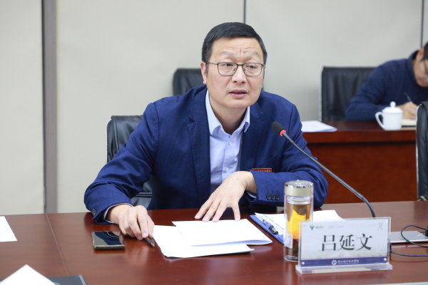 吕延文汇报了近年来学校发展情况,重点围绕推进“双高”院校建设、提升服务地方发展水平、推进产教深度融合、开展中高职一体化探索和实践等方面作了汇报。