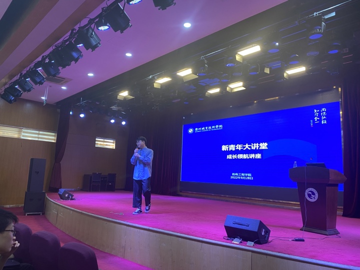 为让2022级新生提早做好职业生涯规划,开启良好的大学生涯开端。9月28日下午机电工程学院在图书馆1号报告厅开展了2022级新生成长领航讲座。讲座邀请到衢州学院汤剑副教授、机电工程学院2021届校友杨启凡。学院党总支副书记叶云霞、辅导员何韧之以及2022级新生参加本次讲座。