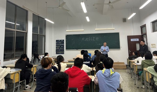 一进班级,同学们用热烈的掌声欢迎何百通的到来。何百通对同学们选择衢州职业技术学院表示欢迎,就当前疫情防控和安全工作作了强调,并且亲切地询问同学们的大学适应情况。他强调,当今社会发展迅速,时代对当代青年的要求也是不断更新、提升,同学们要在求学过程中努力做好以下几点:一是当代青年应立鸿鹄之志,对整个国家的发展要有深刻认识。如今我们国家取得了长足的发展,生活在这个时代是幸福的,所以当代大学生一定要立志存高远,要站在国家的层面考虑问题,既要有“位卑未敢忘忧国”的谨慎,也要有“愿得此身长报国”的担当。二是当代青年应更加自信、自强、自律。艺术设计专业的学习面临着来自思想创新、课业繁重等多方面的压力,在面对压力时,要学会自律、学会保护、学会调节,拓宽自己的发展空间,多与他人进行思想及创意上的碰撞。三是当代青年应培养个人兴趣。何百通拿自己的数学教学打比方,他认为数学当中特别是几何都有自己独特的美。因此在大学里,要学会培养自己的兴趣,拓宽自己的知识面,学习不要禁锢在书本当中,要有跳跃性的思维和独到的见解。四是当代青年应热爱生活。何百通鼓励大家多去参与一些课外活动,接触不一样的人,多去锻炼自己的沟通能力,在交流中成长。