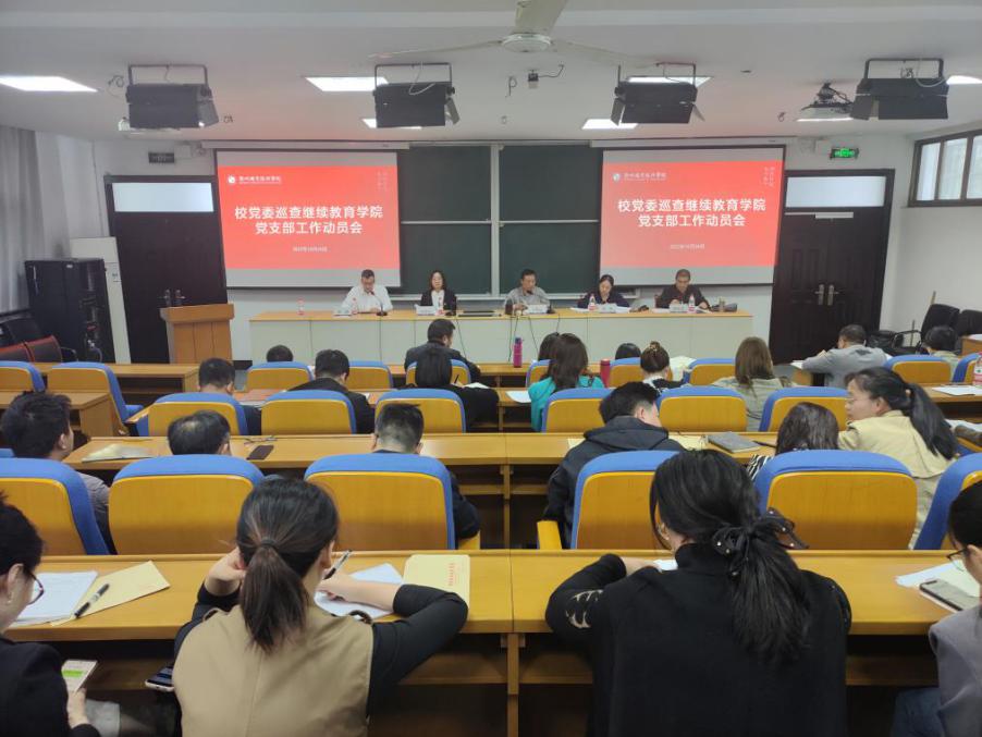 据学校党委关于巡查工作的统一部署,10月24日下午,校党委巡查继续教育学院党支部工作动员会在阶东1-1召开,校党委委员、纪委书记、校党委内部巡查组组长方焕云,党委委员、组织部部长周帅出席。动员会由继续教育学院党支部书记徐荆主持,校党委内部巡查组全体成员、继续教育学院全体教职工出席会议。