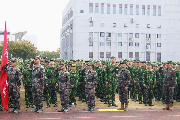 军训动员大会在雄壮的国歌声中拉开序幕。
