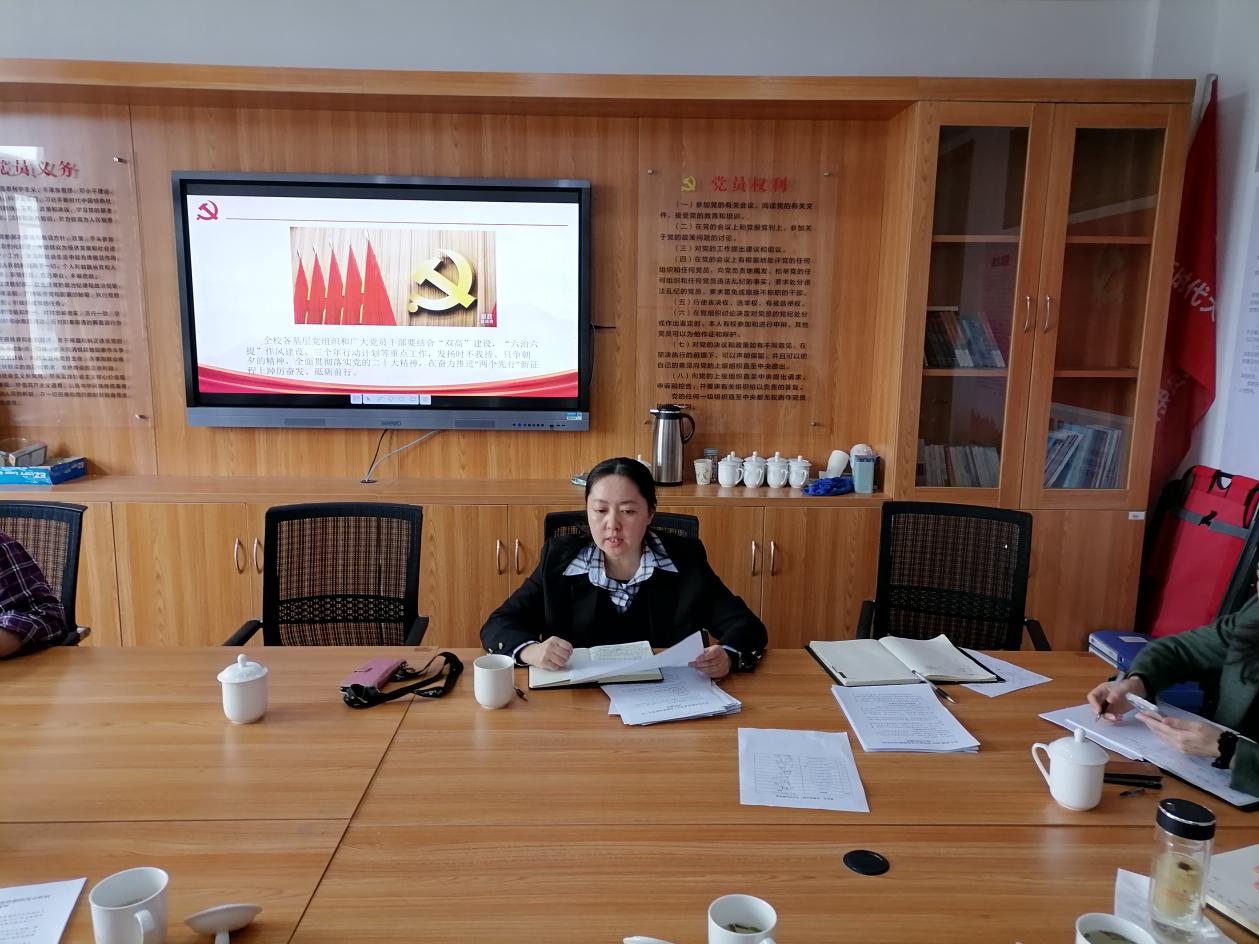 最后,周帅部长作了讲话,她指出,接下来各级党组织:一是要把学习宣传贯彻党的二十大精神作为首要的政治任务,要原原本本地学习党的二十大报告和党章,要认真领悟党的二十大提出的新思想新论断、作出的新部署新要求,要结合“双高”建设、“六治六提”作风建设、三个年行动等重点工作,坚持全面准确,学深悟透;二是要认真学习贯彻曹锦喜副部长的讲话精神,梳理党建工作存在的问题,提前谋划,特别要扎实推进省级、校级“双创”、“双带头人”党支部书记工作室的创建培育工作,确保顺利完成创建培育任务;三是要加强对党建工作的指导、审核把关。要高标准严要求地抓好各项工作,对党务干部要加强指导、培训,不断提升业务水平,对提交的材料要仔细审核,严格把关,对党建提升年各项工作更要落实责任,细化措施,确保落地落实。