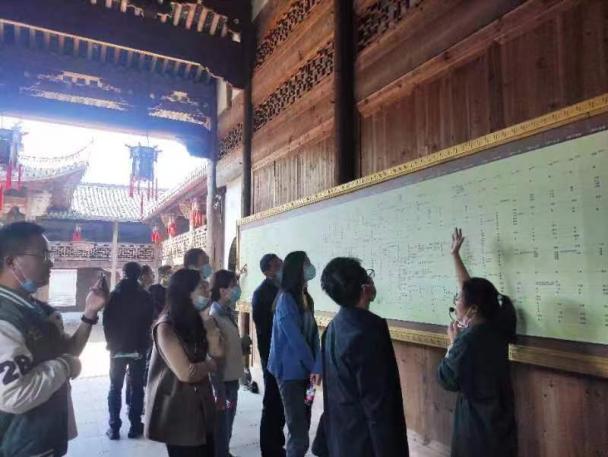 活动中,讲解员详细介绍清漾毛氏祖祠建设情况,祖祠始建于宋朝,重建于清代,2010年又再修缮,建成后的清漾毛氏祖祠三进两院呈对称布置,内设和敬堂、追远堂、戏台等,占地面积2452平方米。复建后的毛氏祖祠为毛氏子孙提供了追思先贤和传承家风的重要场所。在聆听讲解的过程中,全体思政教师了解了毛氏文化村古村落的保护与开发工作情况,深刻感受到了清漾毛氏文化村的优秀清廉文化传统和深厚人文底蕴。
