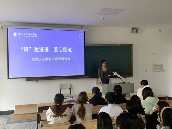 11月9日下午,医学院在阶东1-3教室举办了“‘研’途漫漫,医心医意”优秀校友学业生涯专题讲座。本次讲座邀请到目前就读于浙江中医药大学的护理学研究生、我院2019届优秀毕业生徐佳佳、张佳钰。我院各个专业的学生代表聆听了本场讲座,讲座由辅导员金湛主持。