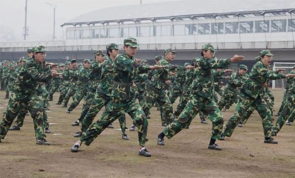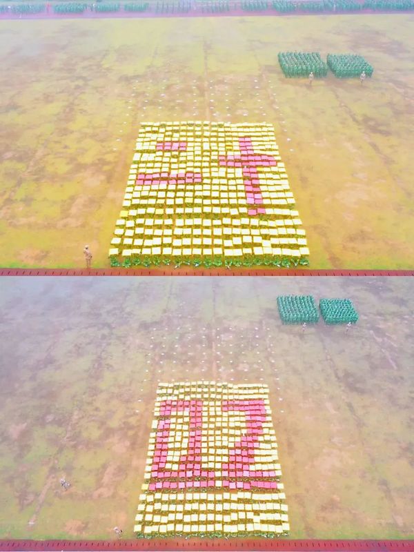 庄严的国歌毕,数字方阵400名同学摆出了“2022、党徽、二十、QZ”等字样,男生方阵上演了擒敌拳表演,女生方阵表演了匕首操。