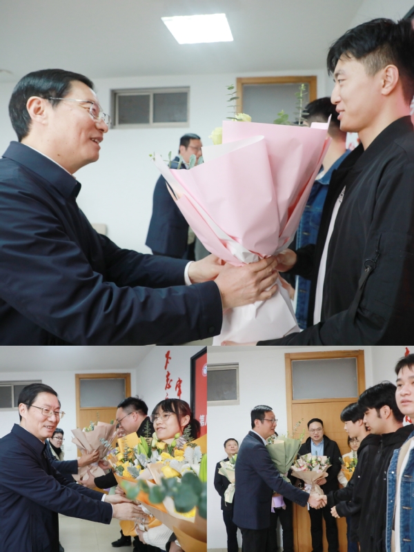 徐须实、吕延文代表学校向获奖师生表示热烈祝贺并献花合影留念。
