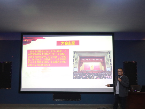 11月25日,校党委委员、宣传部长孔庆红以《从党的奋斗历程解读党的二十大精神》为题作党的二十大精神专题宣讲,与宣传工会党支部、马克思主义学院教师、8090+新时代理论宣讲团成员一起交流、探讨、学习党的二十大精神认识和体会。