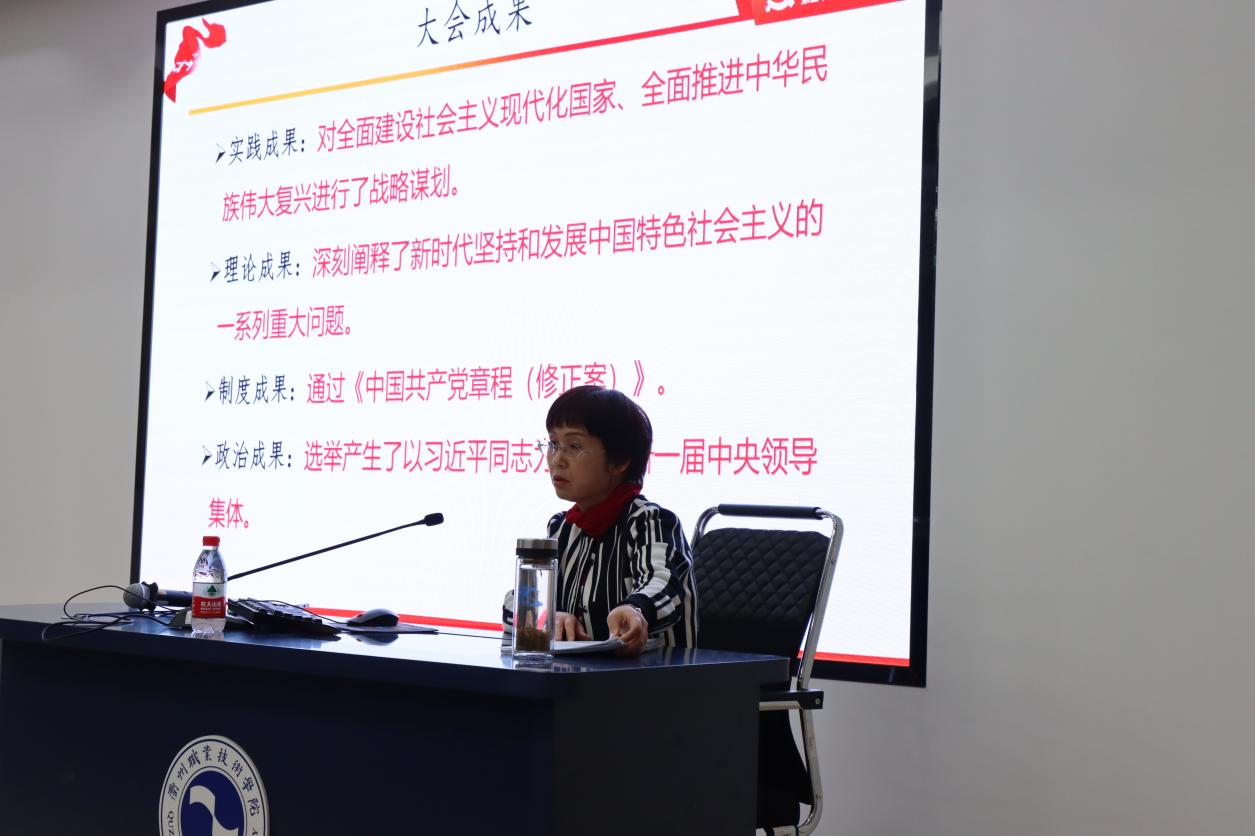 徐浪静从大会的成果、意义和党的二十大报告等方面,对党的二十大进行介绍。围绕过去5年工作和新时代10年伟大变革,习近平新时代中国特色社会主义思想的世界观和方法论,以中国式现代化推进中华民族伟大复兴的使命任务,以伟大自我革命引领伟大社会革命的重要要求和团结奋斗的时代要求等方面对党的二十大精神进行详细解读。