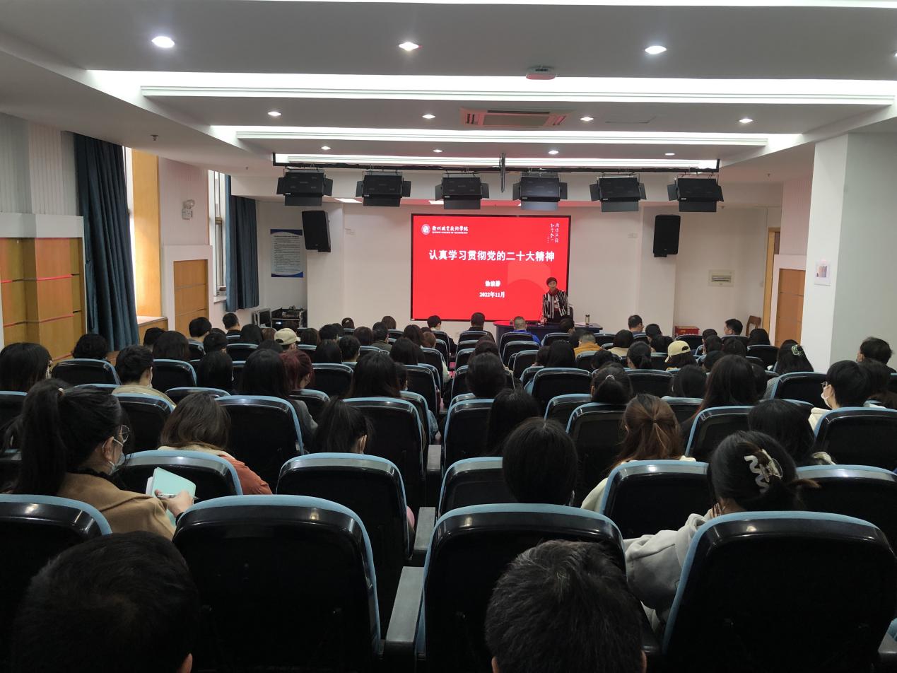 11月25日下午,校党委委员、副校长徐浪静在图书馆2号报告厅进行党的二十大精神的专题宣讲。经济管理学院、继续教育学院、创业学院、图书馆、计财处全体教职工和学生代表参加学习。