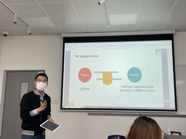 本次培训采用线下方式进行,由学校艺术设计学院教师龚一舟主讲。培训活动中,龚一舟从媒介健康的传播策略、新冠疫情在媒介中的传播与效能、融媒体健康传播现状与发展趋势等几个方面向现场培训学员进行了讲解和分享。