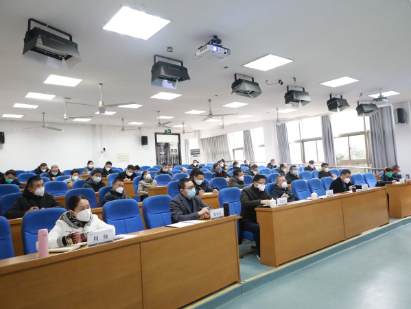 1月5日下午,学校召开学习传达市委八届三次全会精神暨期末工作会议。党委书记徐须实主持并讲话,党委副书记、校长吕延文传达会议精神并布置工作,党委副书记何百通,党委委员、纪委书记方焕云,党委委员、副校长余建军、徐浪静、姚水洪,党委委员、宣传部部长孔庆红,党委委员、组织部部长周帅及各部门(单位)中层正职参加。