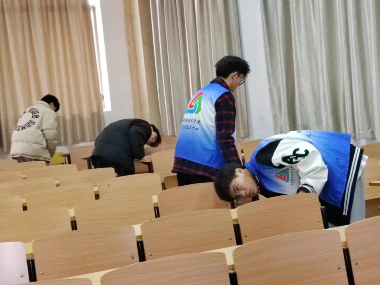 本学期的第二周是期末考试周,为了给广大同学营造一个公平的竞争环境,杜绝考试作弊,考出真实水平,学工部于2月17日中午在阶梯教室开展“做诚实学生,创诚信考场”劳动教育实践活动。来自7个二级学院共50名志愿者参与了此次活动。