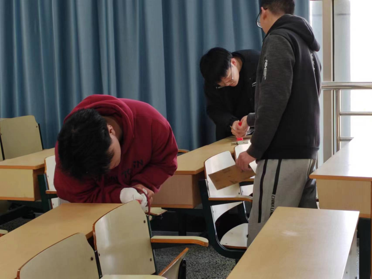 本次实践活动的主要任务是清洁备考教室,打扫教室卫生,去除教室墙壁、桌面上的字迹等。同学们分工明确,有的拿着铲子逐一清理墙面上的字迹,有的卖力地拖着地,有的用抹布细心地擦拭教室的每一处角落。整个活动持续1个小时,活动现场井然有序。